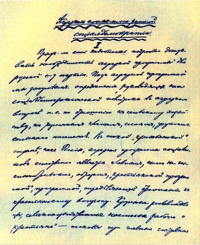 Первая страница рукописи В. И. Ленина «Аграрная программа русской социал-демократии». - 1902 г. Уменьшено